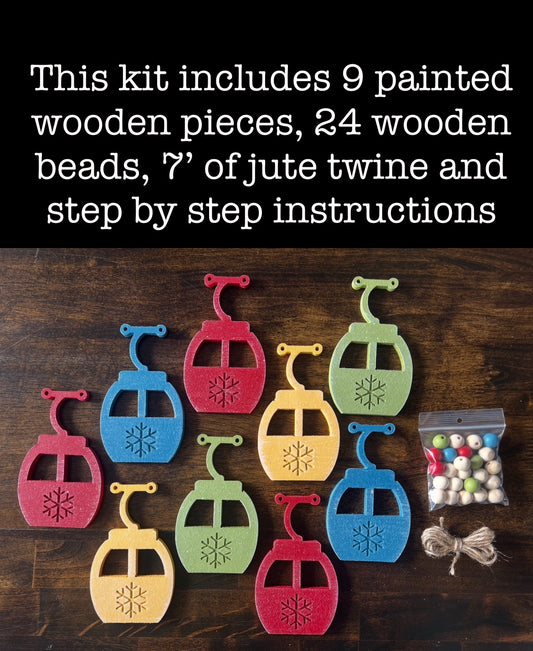 Ski gondola DIY garland handmade with painted wood pieces. Free shipping