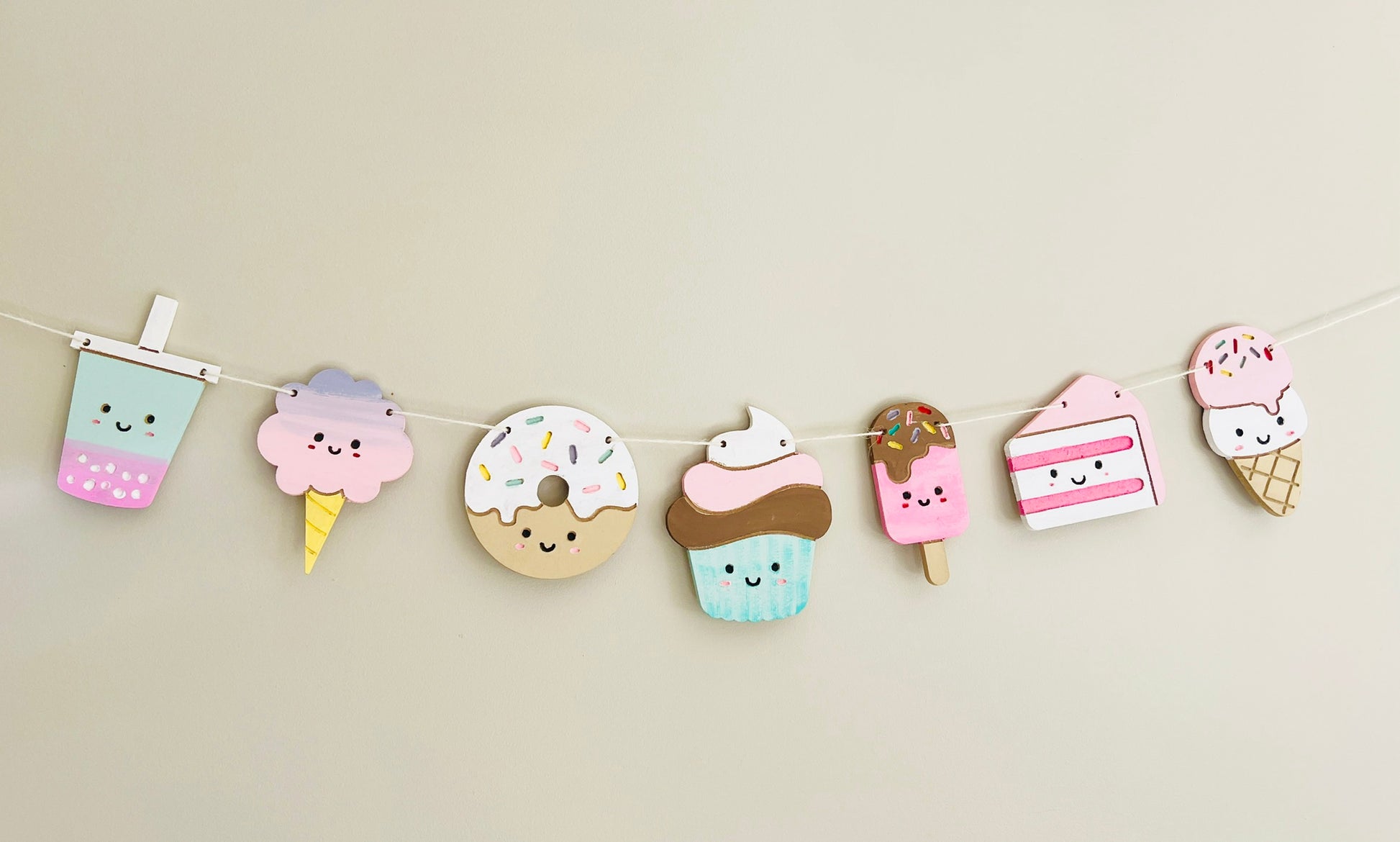 This listing is for a cute Kawaii paintable wood craft kit “Sweet Treats” for DIY individual ornament or Garland.