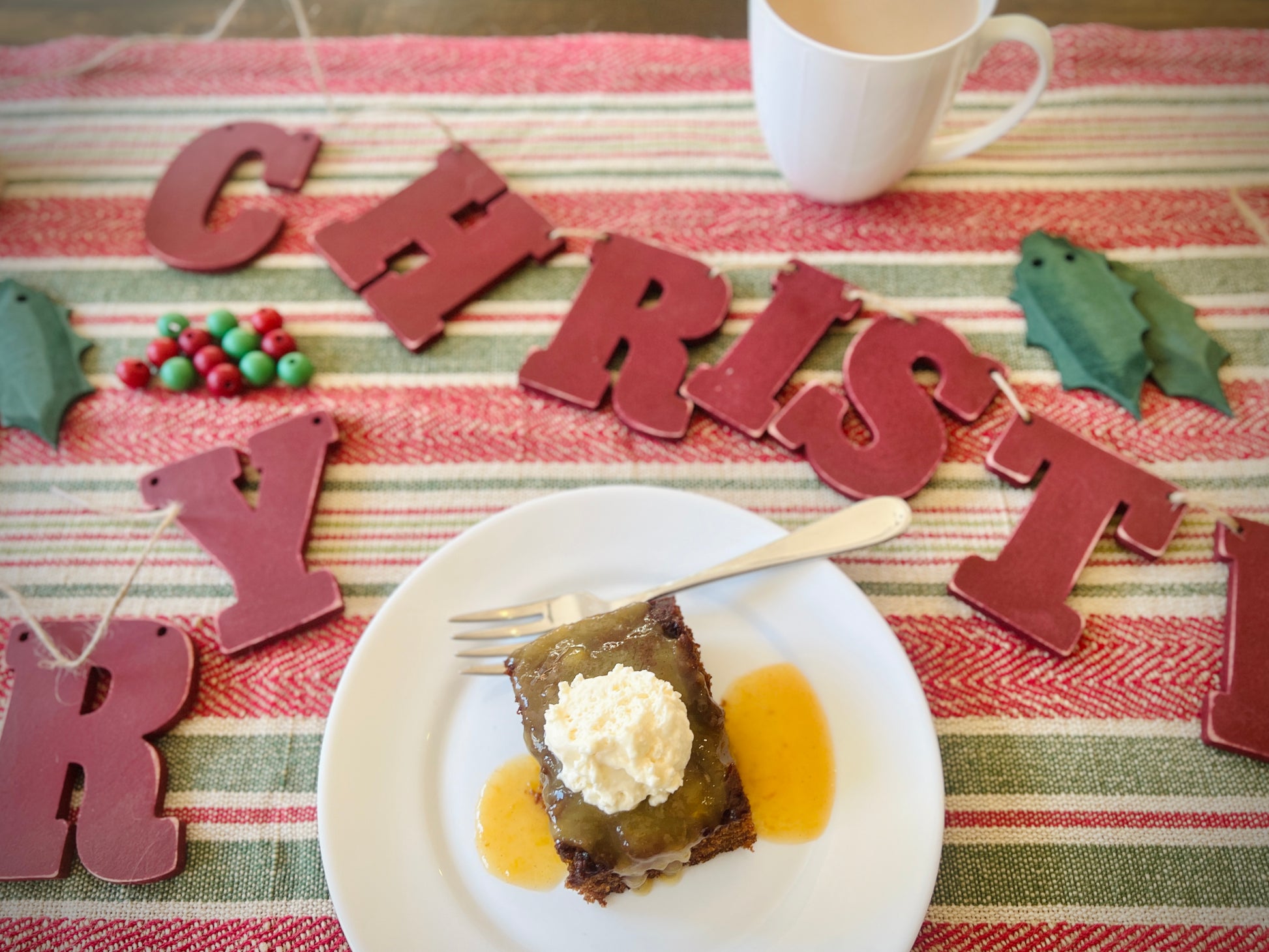 - painted wood letters and holly leaves