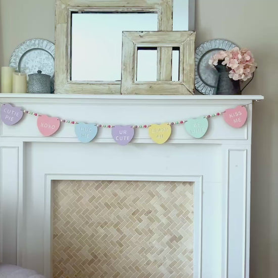 Valentines Day garland, conversation candy hearts banner, FREE SHIPPING